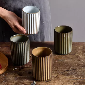 Vertical Striped Ceramic Coffee Mug, 300ml – Exquisite Teacup