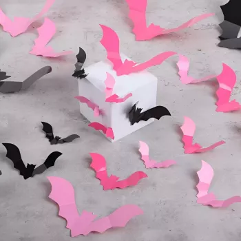 48pcs Pink 3D Bat Wall Stickers for Halloween Party & Home Decoration