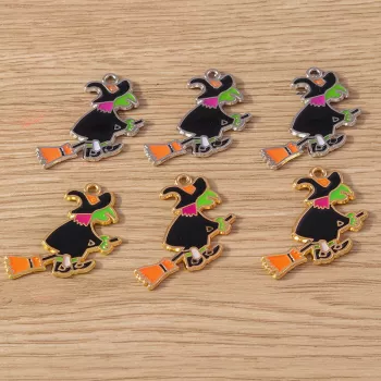 10pcs Halloween Witch Charms Enamel Pendants for Jewelry Making